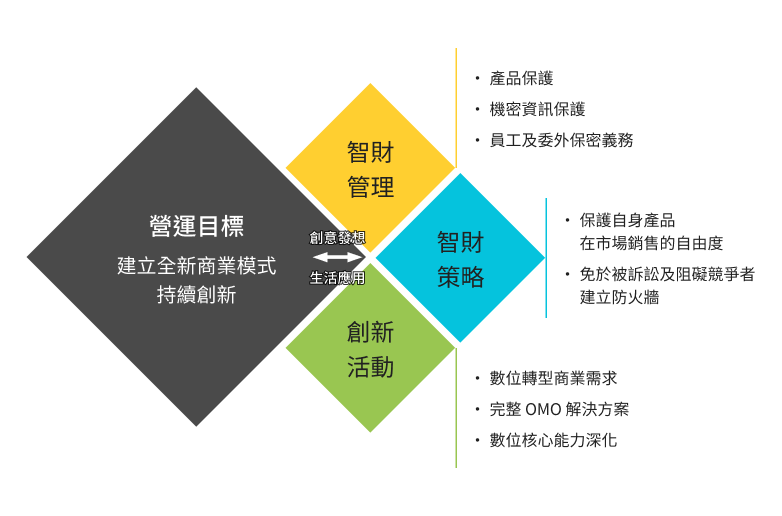 結合營運目標發現具潛力之研發產品,協助申請專利。
